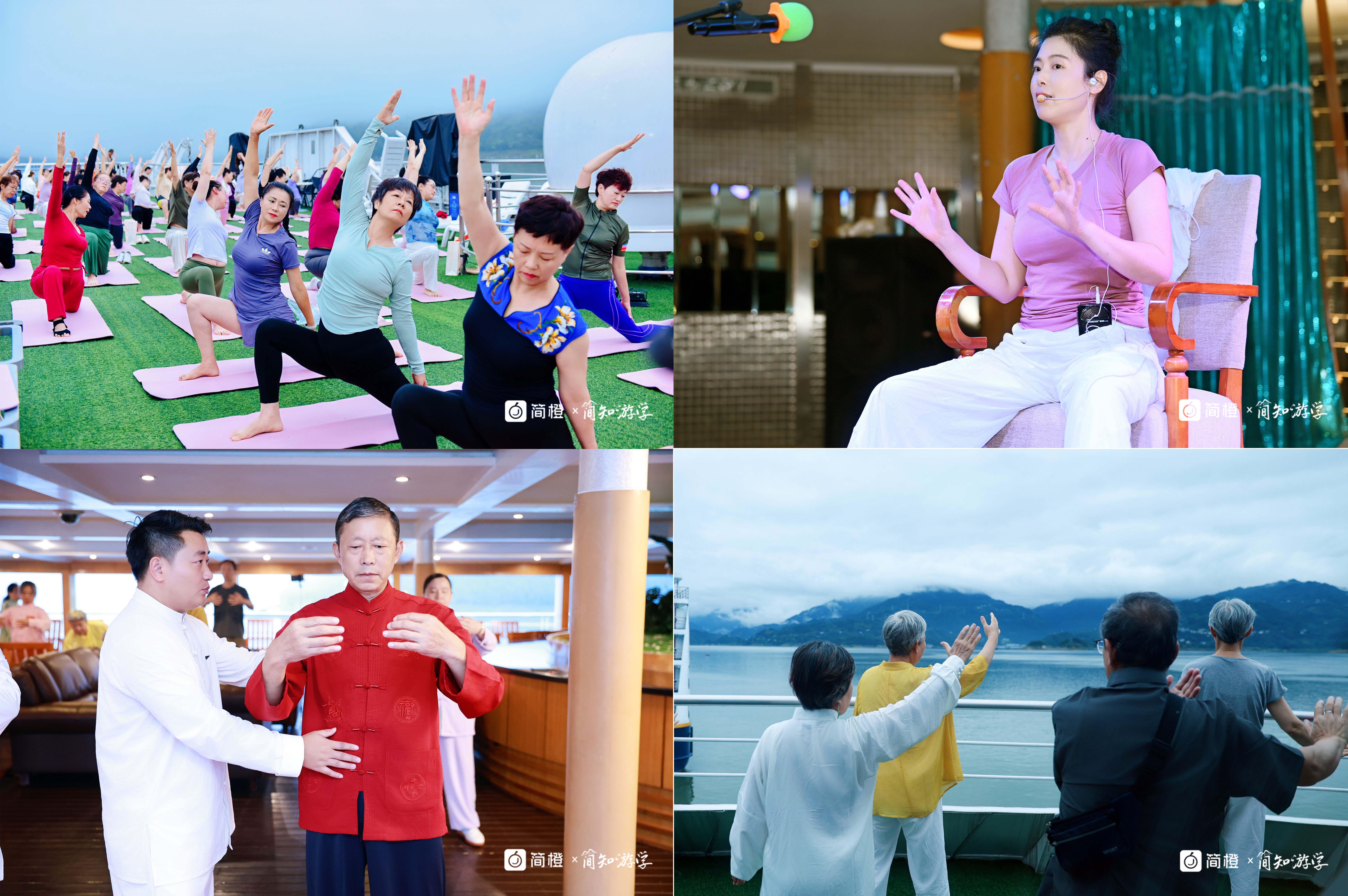 (简橙名师与学员们在甲板练习瑜伽、太极)