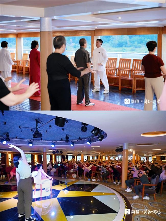 在行程规划上,活动巧妙地将观光游览与修行体验融为一体。学员们不仅有机会乘坐豪华游轮畅游长江三峡,饱览两坝一峡、三峡人家、小三峡、白帝城、巫峡与瞿塘峡等标志性景观,更能参与由简橙瑜伽首席导师、亚太国际瑜伽协会高级瑜伽导师王蕊领衔的甲板日出瑜伽课程,以及由简橙太极首席导师、武当三丰太极传人薛精医华亲自指导的晨间太极与八段锦修炼。这种创新的教学模式真正实现了"教、学、游"三位一体的教育理念,打破了传统教育中“师·生·景”之间的界限。