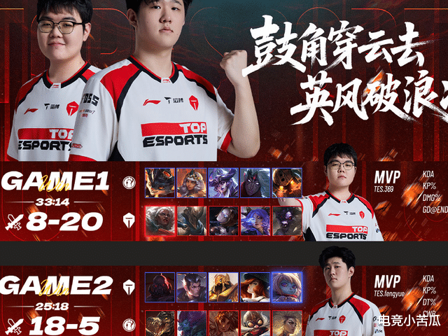 TES是开心了,但是IG就难受,解说还直接补刀了一波,赛后还口误说成了恭喜IG,明明IG惨败了。反正Rookie赛后扭头就第一个离场了,这两把,玩得太憋屈了。此战之后,TES和IG都是2胜4负,登峰组的难兄难弟,难怪网友们也锐评,真的心疼。